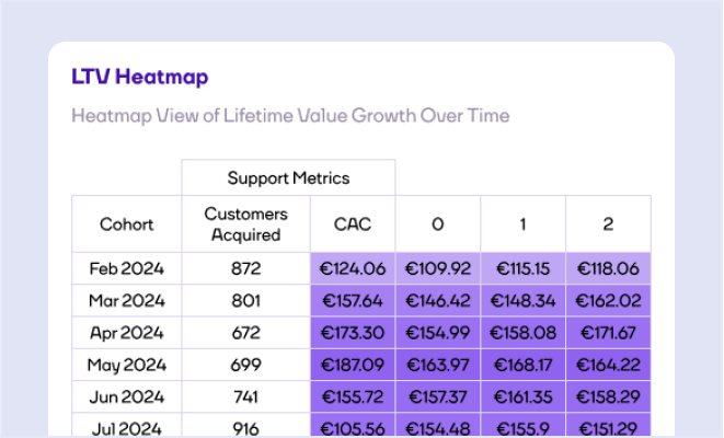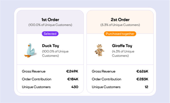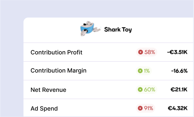 Aggregate data from every aspect of your business into one centralised dashboard, including product-level profit contribution margins, catalogue performance, and acquisition costs.